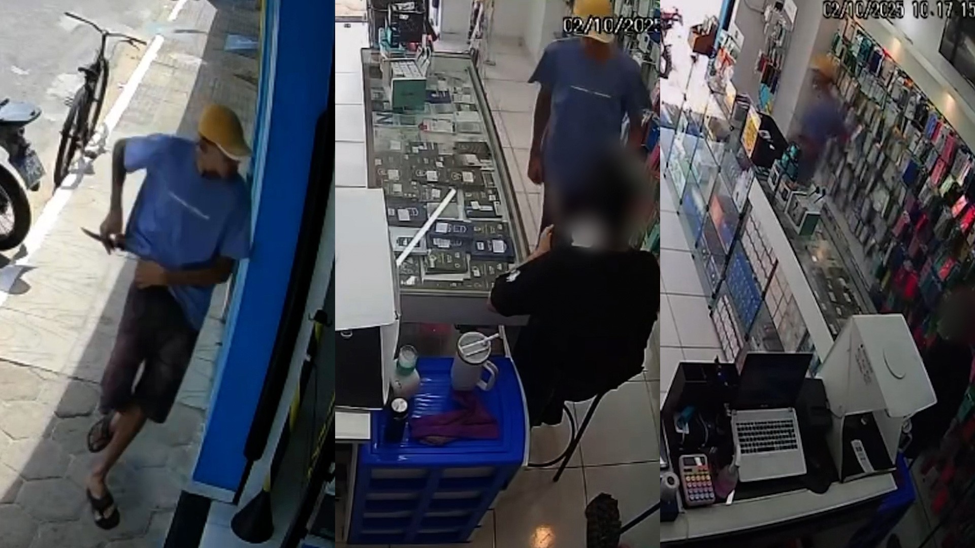 Vídeo: funcionário é ameaçado com faca e tem celular roubado durante assalto em loja no litoral do Piauí